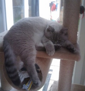 Er ist ein Prachtkerl und hat schöne blaue Augen und die Farbe lilac-point.